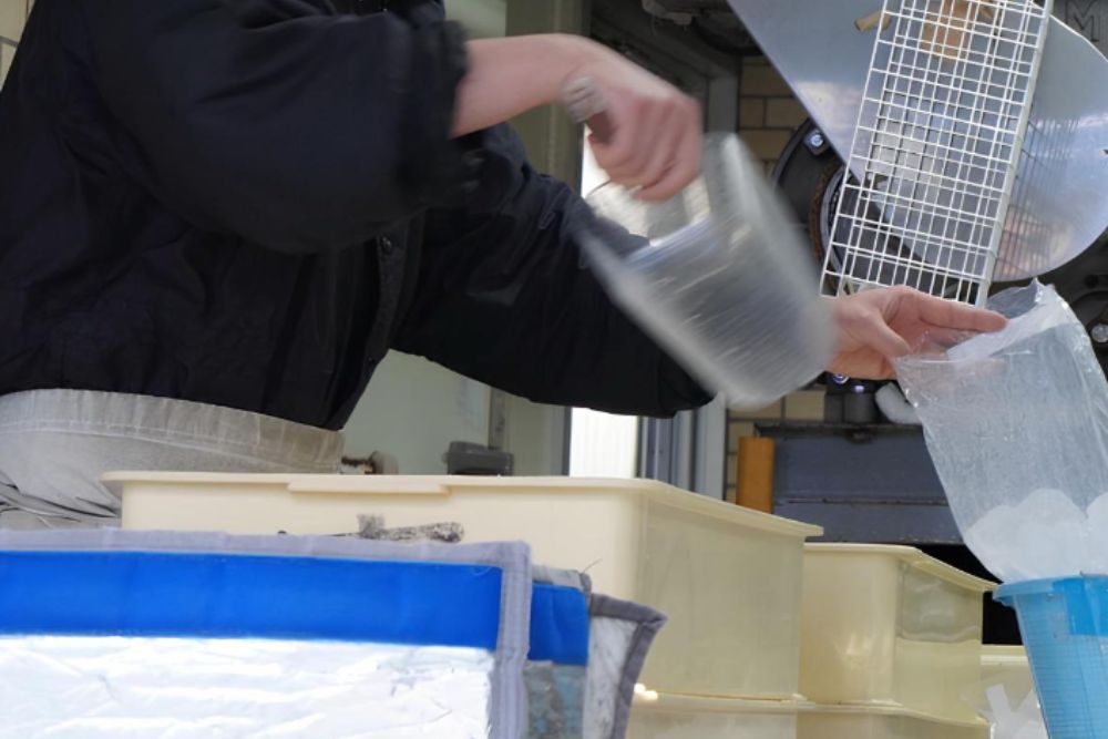 氷の製造や配送を支える工場の中での作業は、防護服を着用した流れ作業が中心で、特別な資格や経験は不要です。